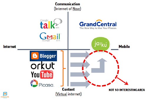 Just heard that Google bought Jaiku. Jyri and Petteri congrats again! I tried to make sense of the move. Is it about Twitter? Is it about Facebook? Well actually it is about neither(in my humble opinion). It is about getting access to the LIVE Mobile Web. There are 4 things that make mobile services fly: